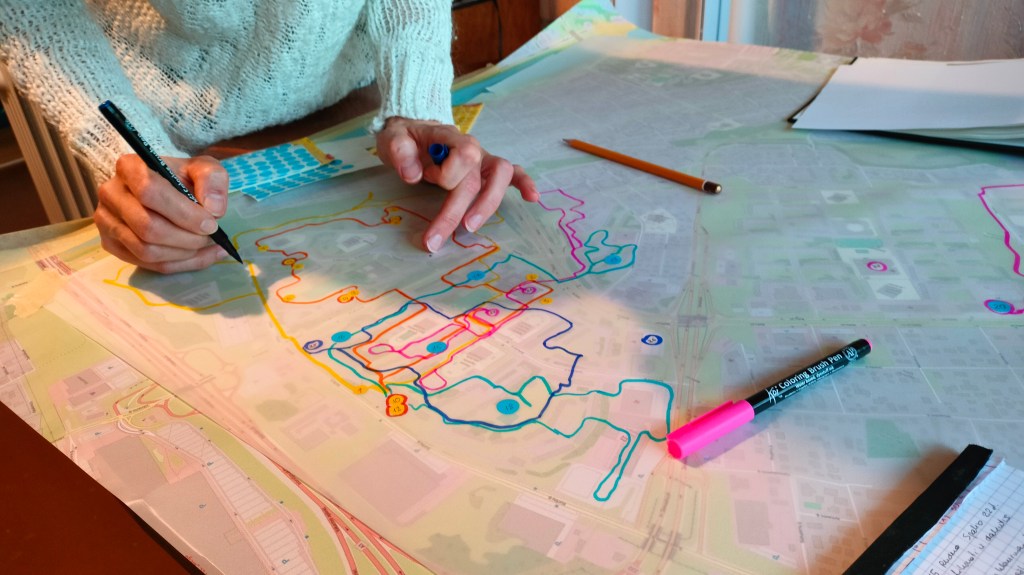 Evelinos meninės praktikos archyvo tyrinėjimas ir veiklų žymėjimas žemėlapyje.